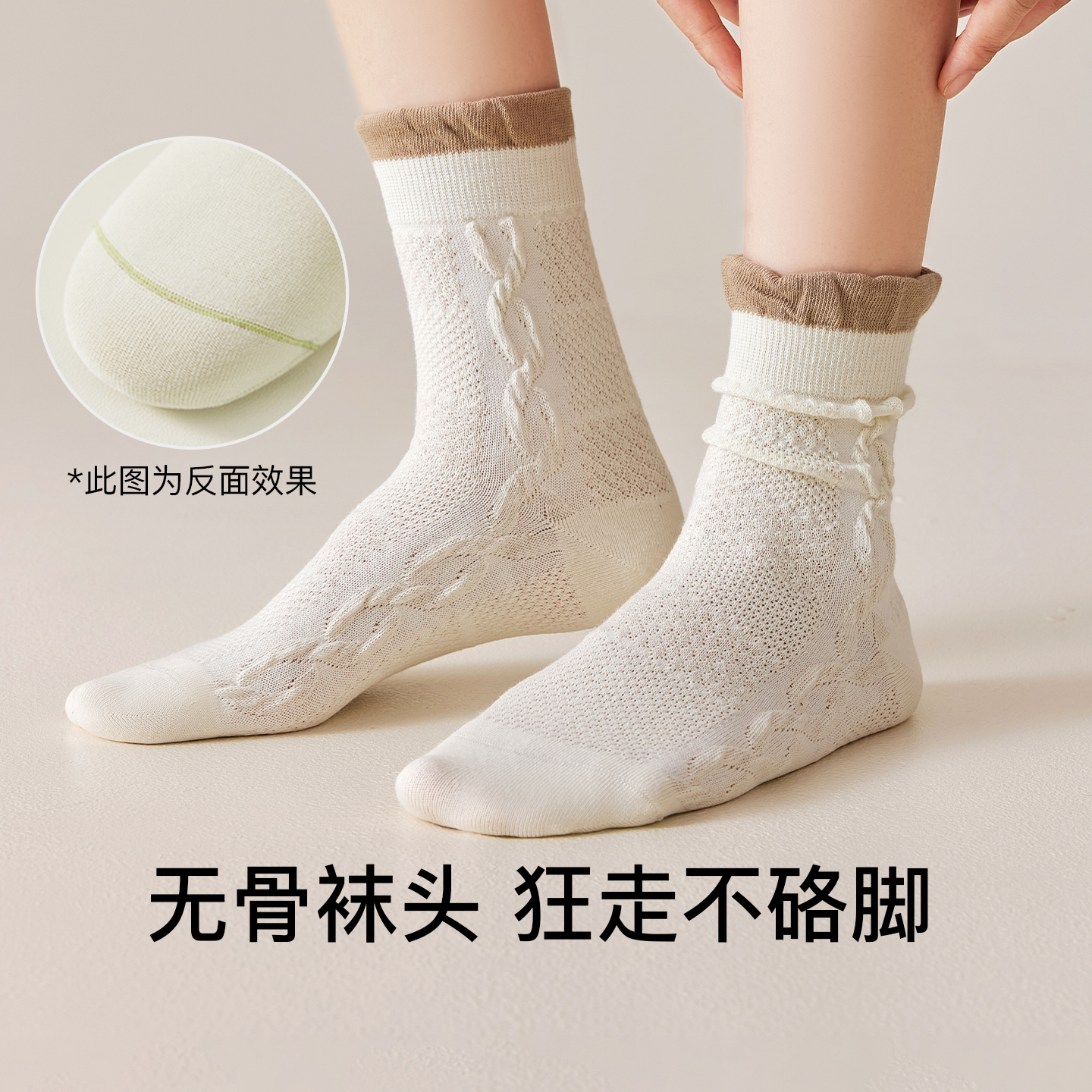 花边袜子女纯棉中筒袜春秋款 无骨月子袜棉袜无骨堆堆袜女士长筒袜