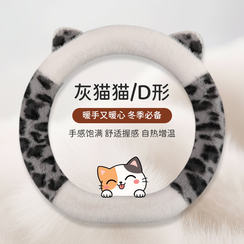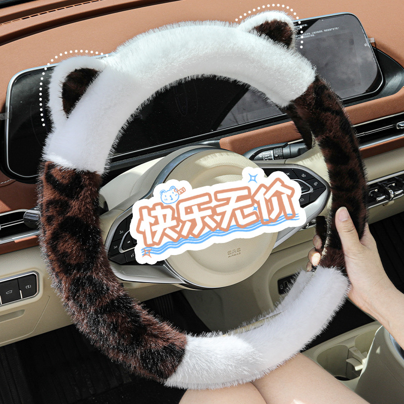 汽车方向盘套冬季 毛绒保暖女车用把套通用防滑卡通可爱冬天加绒暖