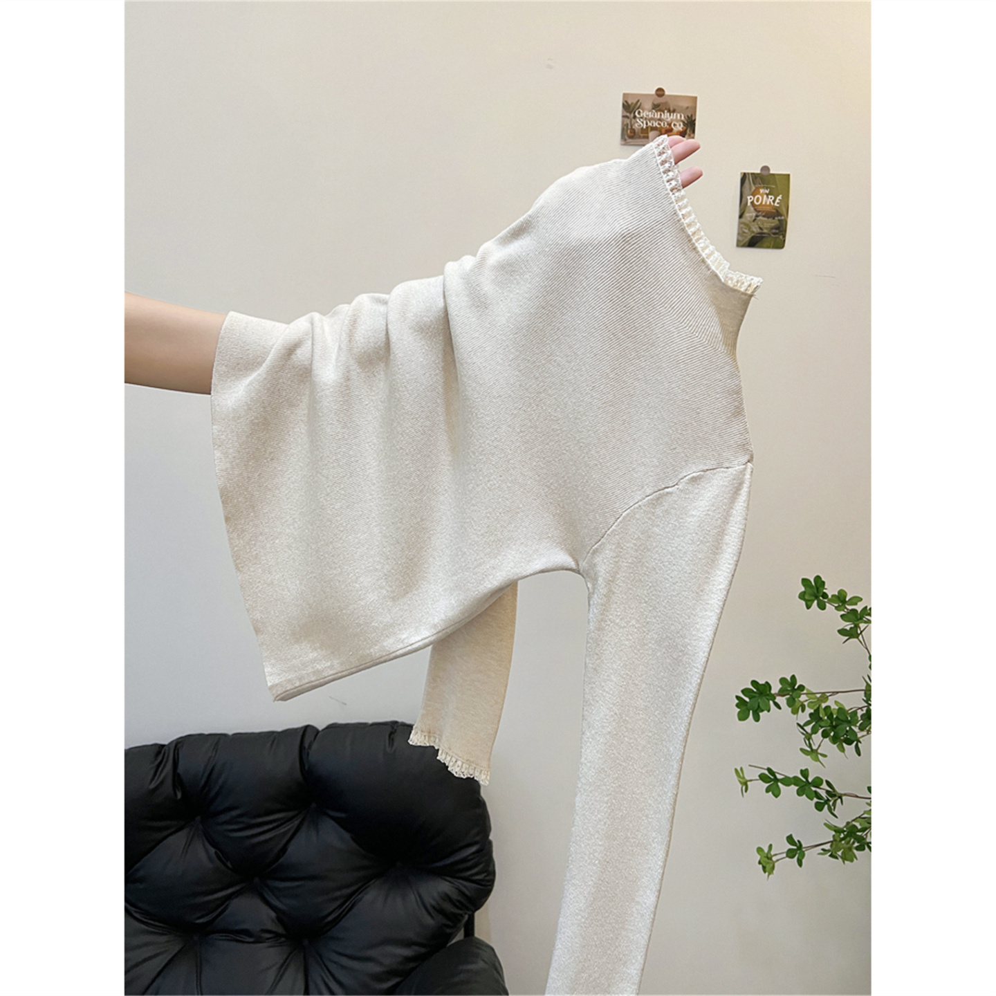 气质内搭打底衫 阔色杏色一字肩显瘦长袖 新款 女2025秋季 毛衣 针织衫