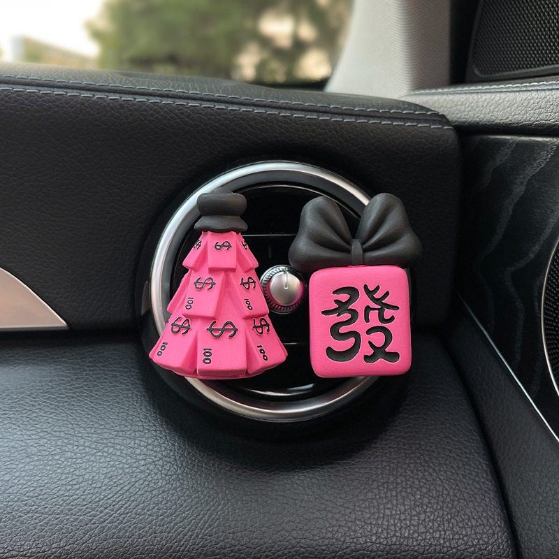 车载女神摆件香薰蝴蝶结发财树麻将汽车空调出风口装 饰扩香石饰品