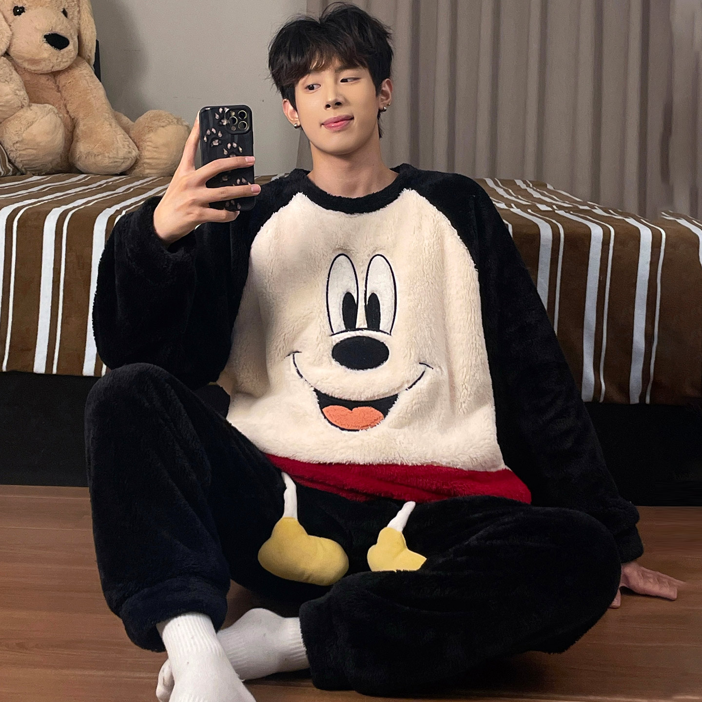 可外穿家居服 加绒加厚珊瑚绒小狗新款 软绵绵半边绒睡衣男款 秋冬季