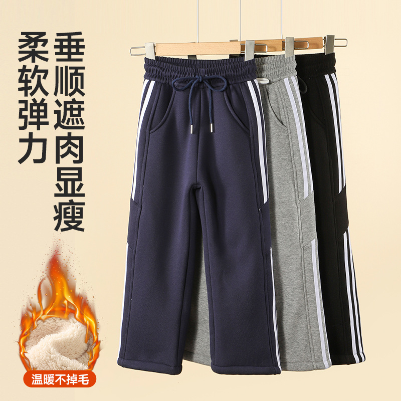 儿童加厚阔腿裤 女童加绒裤 一体绒直筒裤 中大童韩版 子秋冬2025新款