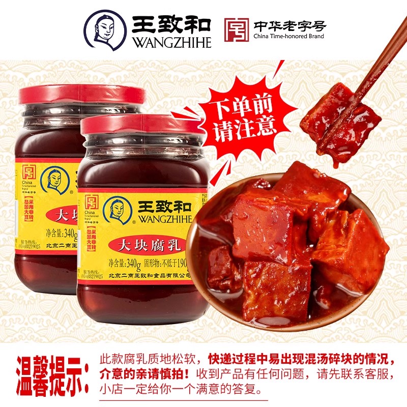 王致和豆腐乳340g大块红方腐乳原味北京特产霉豆腐卤腐下饭酱豆腐