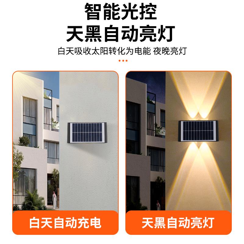 太阳能壁灯室外防水装 饰壁灯花园围墙彩光洗墙户外景观别墅氛围灯
