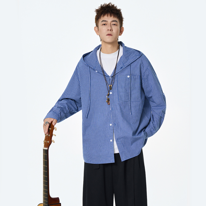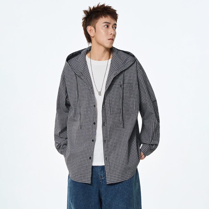 潮牌美式 男女复古宽松情侣休闲百搭衬衣 连帽衬衫