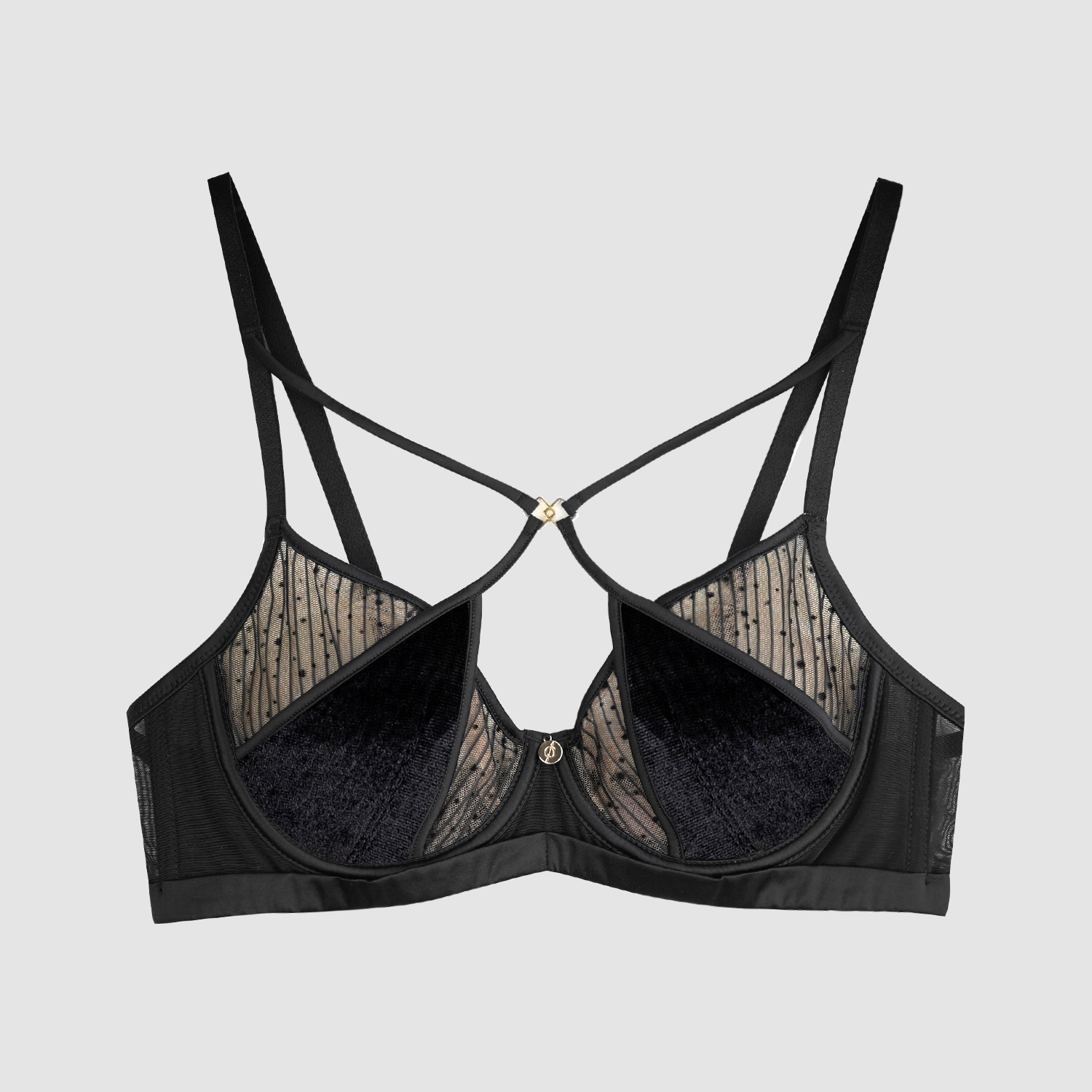 DonnaForte内衣X型丝光绒拼刺绣超薄大胸显小文胸 Nexus Paloma