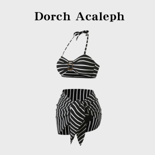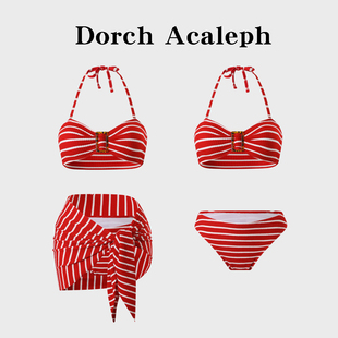 比基尼泳衣女2025新款 绝美高级感条纹三件套性感分体海边度假温泉