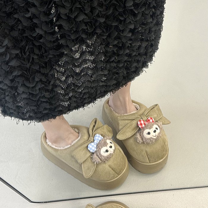 轻便外穿松糕包头拖鞋 甜美蝴蝶结拖鞋 女冬季 卡哇伊雪莉玫棉拖鞋