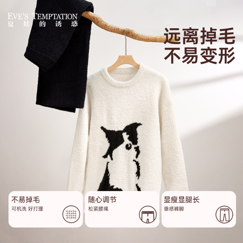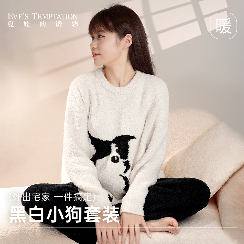 夏娃 宽松慵懒可外穿 诱惑睡衣女秋冬加厚绒保暖女士家居服套装