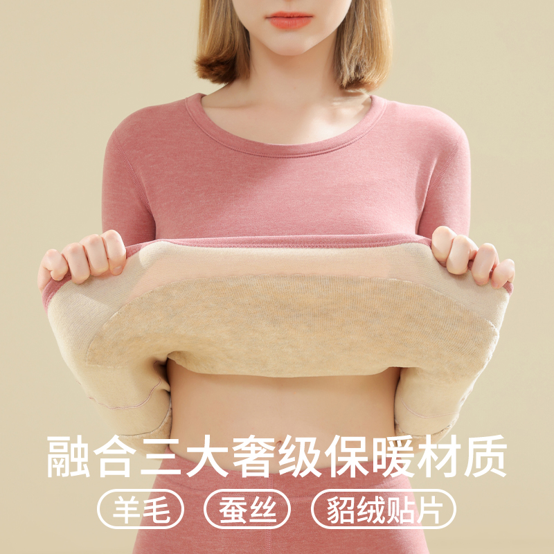 草本初色保暖内衣羊羔绒蚕丝发热加绒加厚情侣秋衣秋裤 贴身 套装