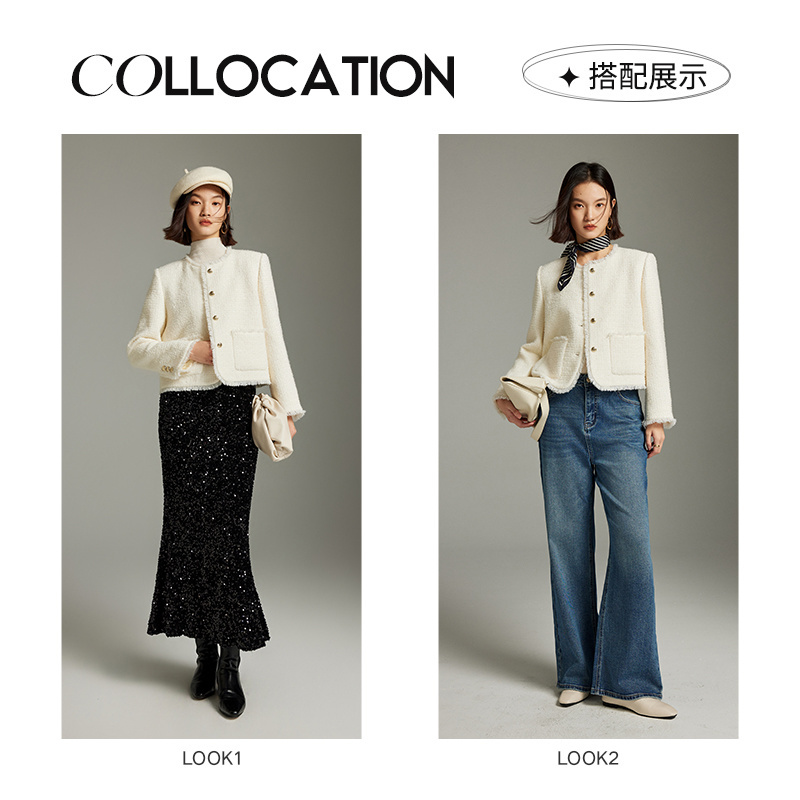 圆领大衣女小个子气质毛呢外套 高端羊毛双面呢短款 2025年春季 新款