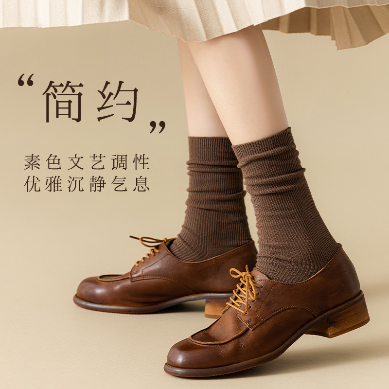堆堆袜子女中筒袜春秋冬季 长筒袜 棉袜无骨月子袜美拉德搭配勃肯鞋