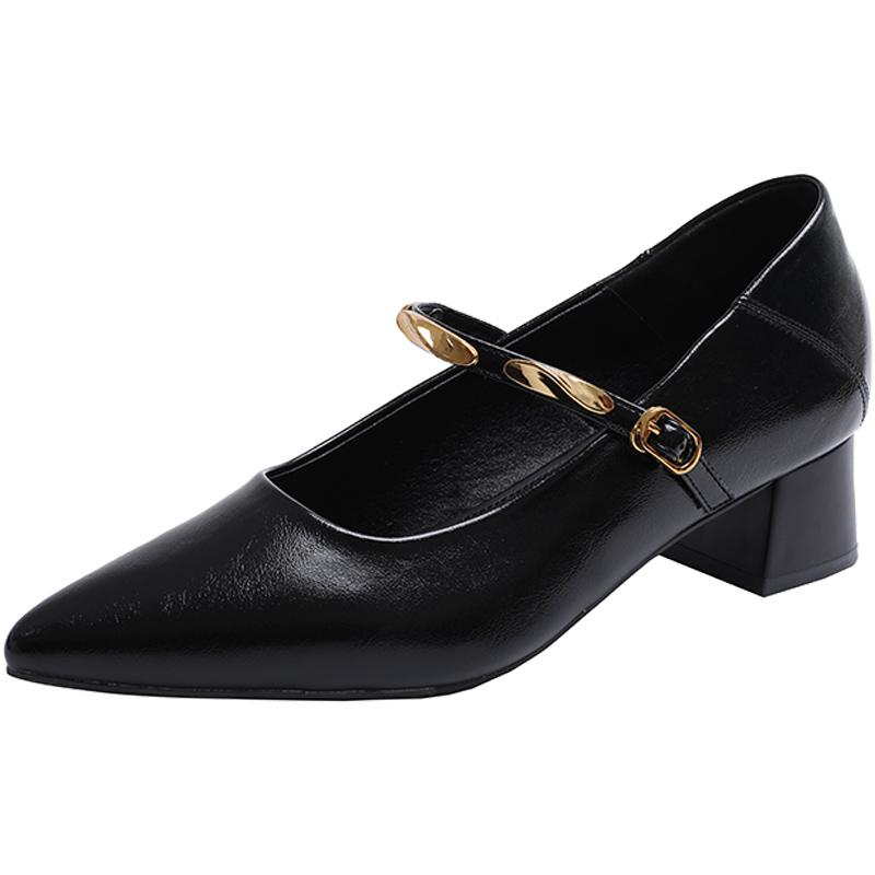新款 康莉春季 高跟单鞋 女方头真皮通勤时尚 子 方扣浅口鞋 博主推荐