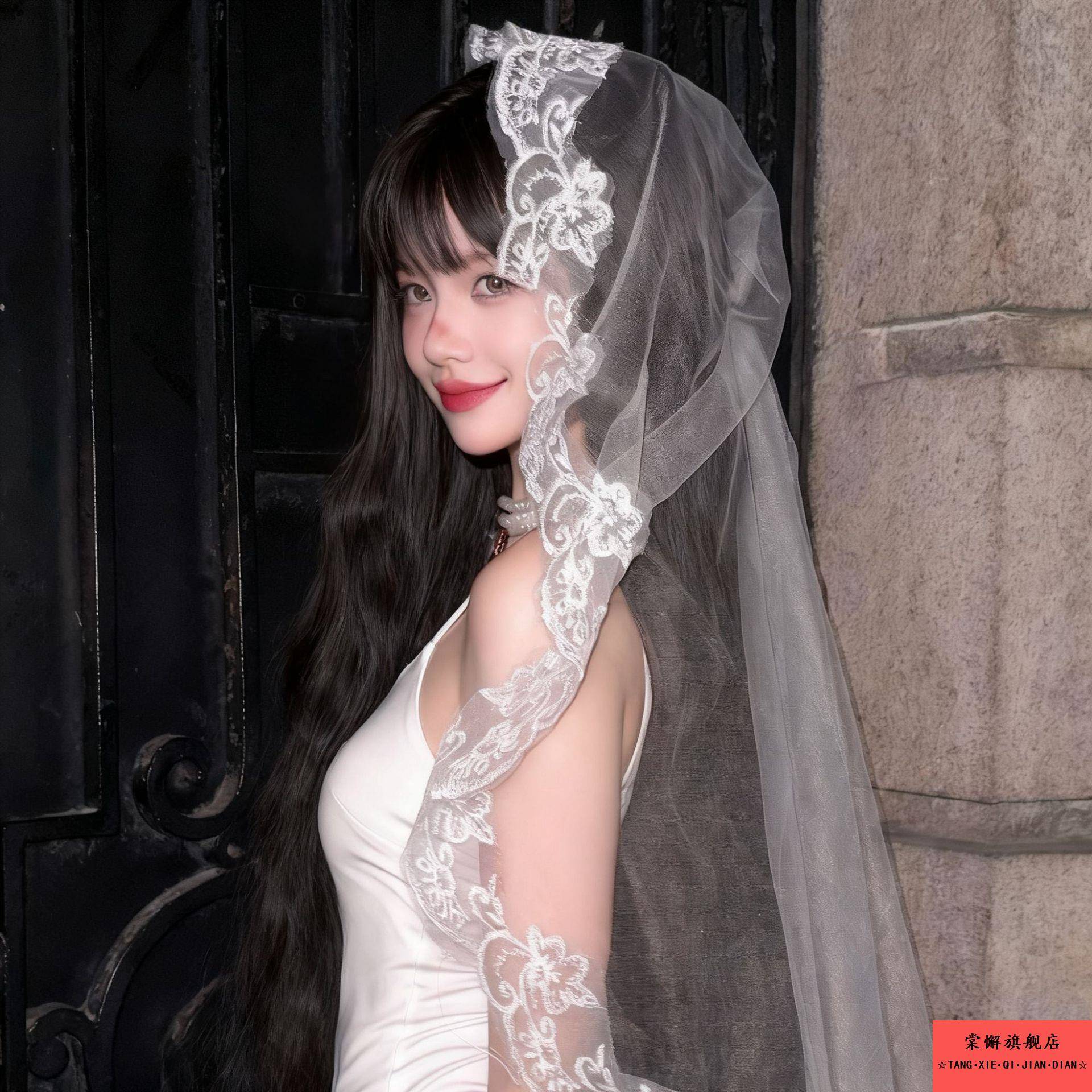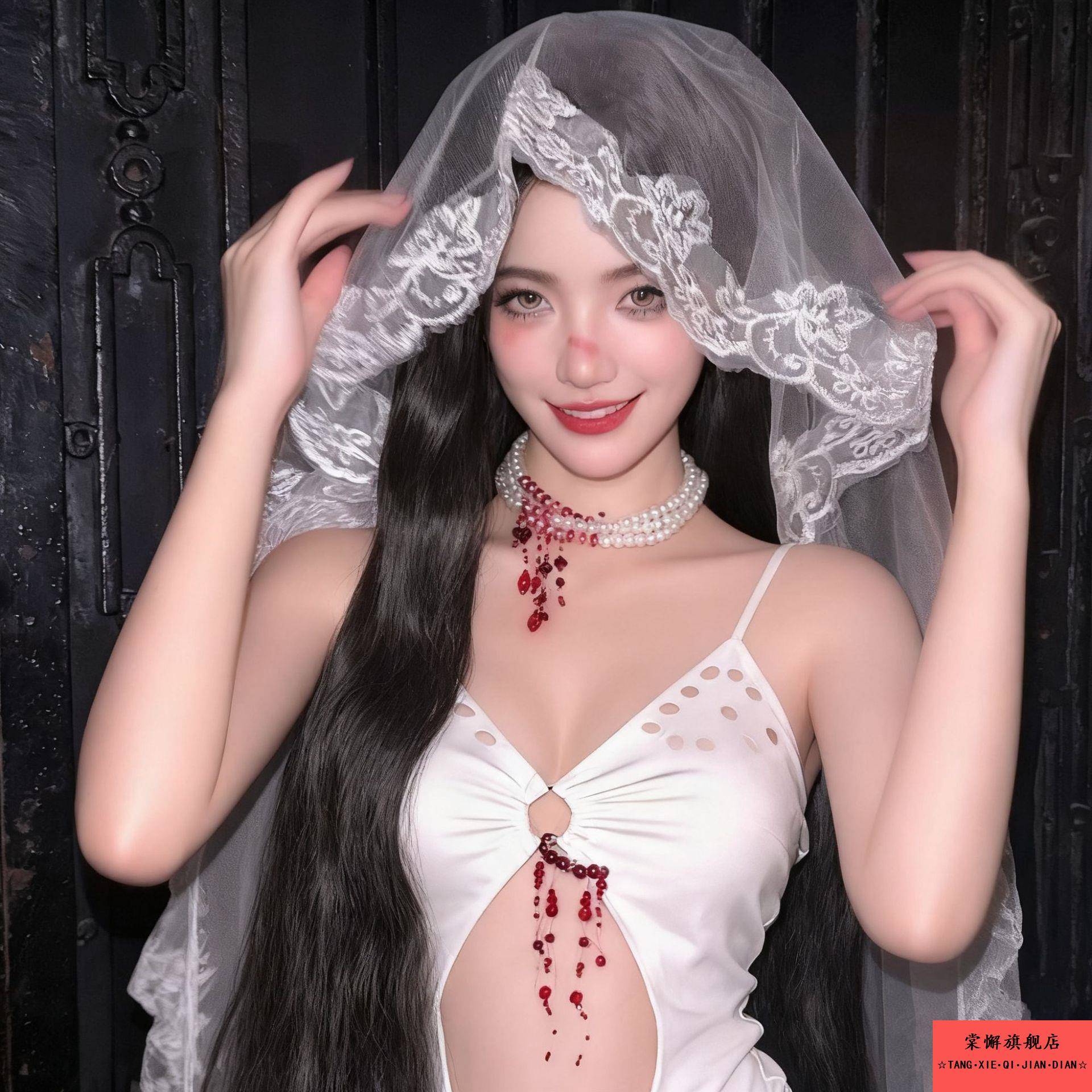 万圣节白色蕾丝花边头纱女鬼新娘cos装 扮发饰哥特风网纱头饰道具