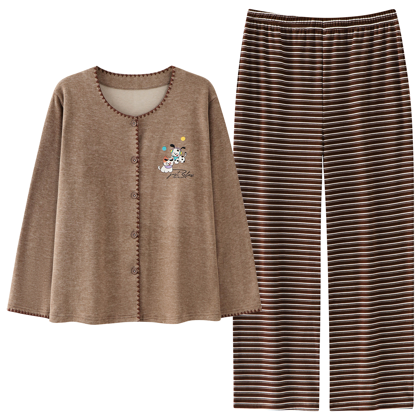 家居服可外穿套装 简约休闲长袖 2025新款 都市丽人德绒睡衣女秋冬季