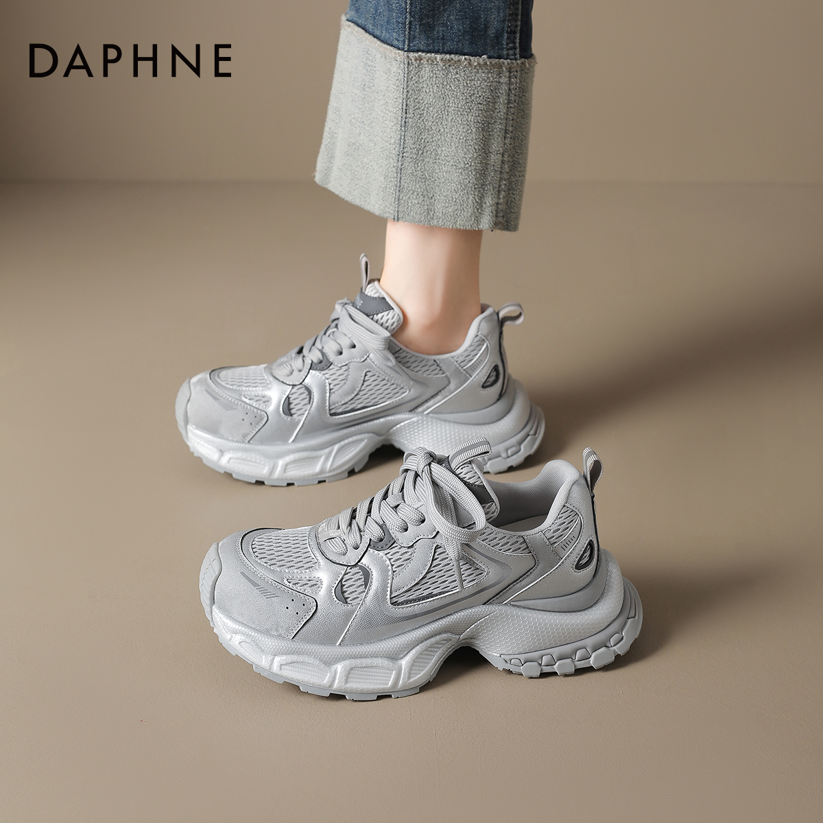 女款 休闲运动鞋 2025秋季 透气厚底小个子女鞋 子 新款 回力银色老爹鞋