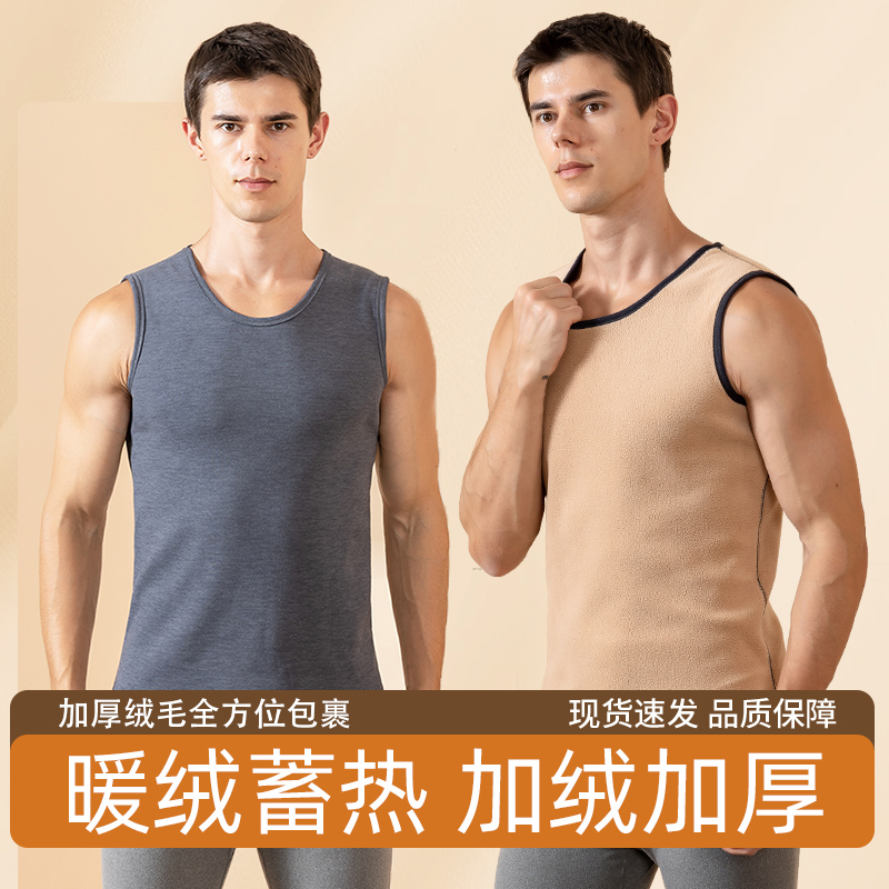 芬腾羊毛蚕丝保暖内衣男绒德无痕发热内穿加绒加厚打底背心冬上衣