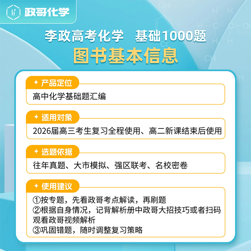 2026李政化学基础一千题1000题高一高二高考一轮二轮总复习教辅资料模拟必刷题含2025年高考真题李政高考化学基础1000题