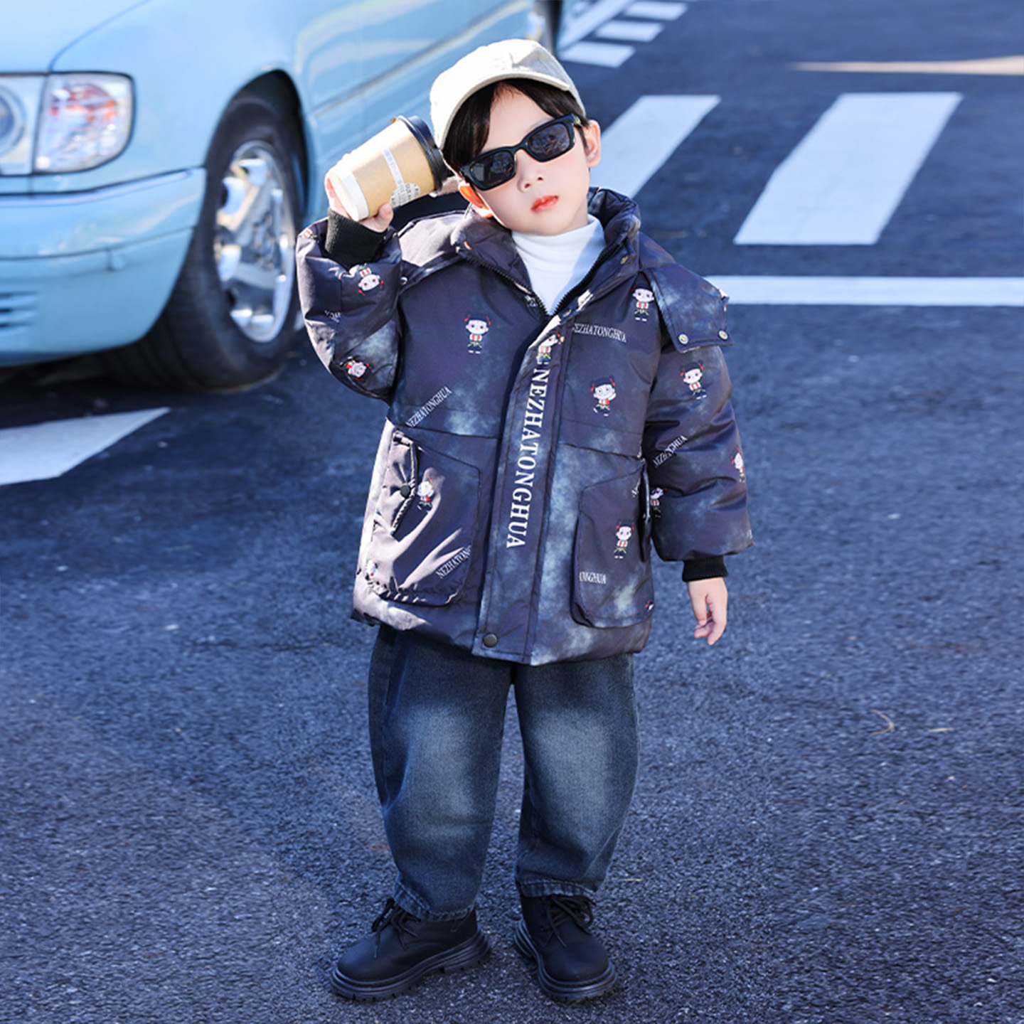 白鸭绒外套男孩哪吒衣服帅气潮 酷宝宝儿童冬装 羽绒服男童冬季 新款