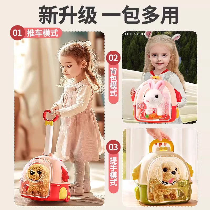 萌宠拉杆箱电动毛绒小兔子会叫会走路宠物儿童玩具女孩子生日礼物