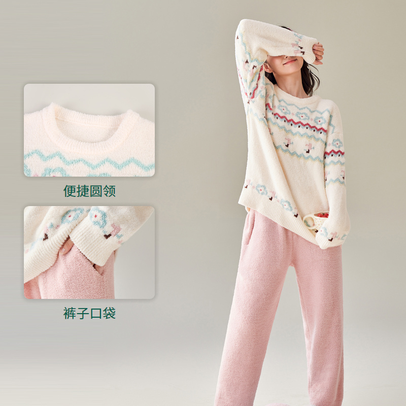 秋冬季 半边绒睡衣女冬款 加厚珊瑚绒可外穿家居服 巨保暖 安之伴