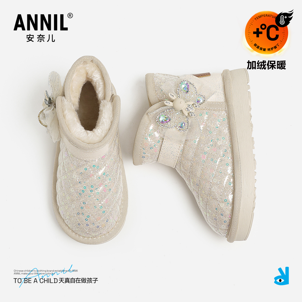 844834 加绒加厚保暖厚底圆头女毛毛鞋 三福雪地靴女冬季 2025新款