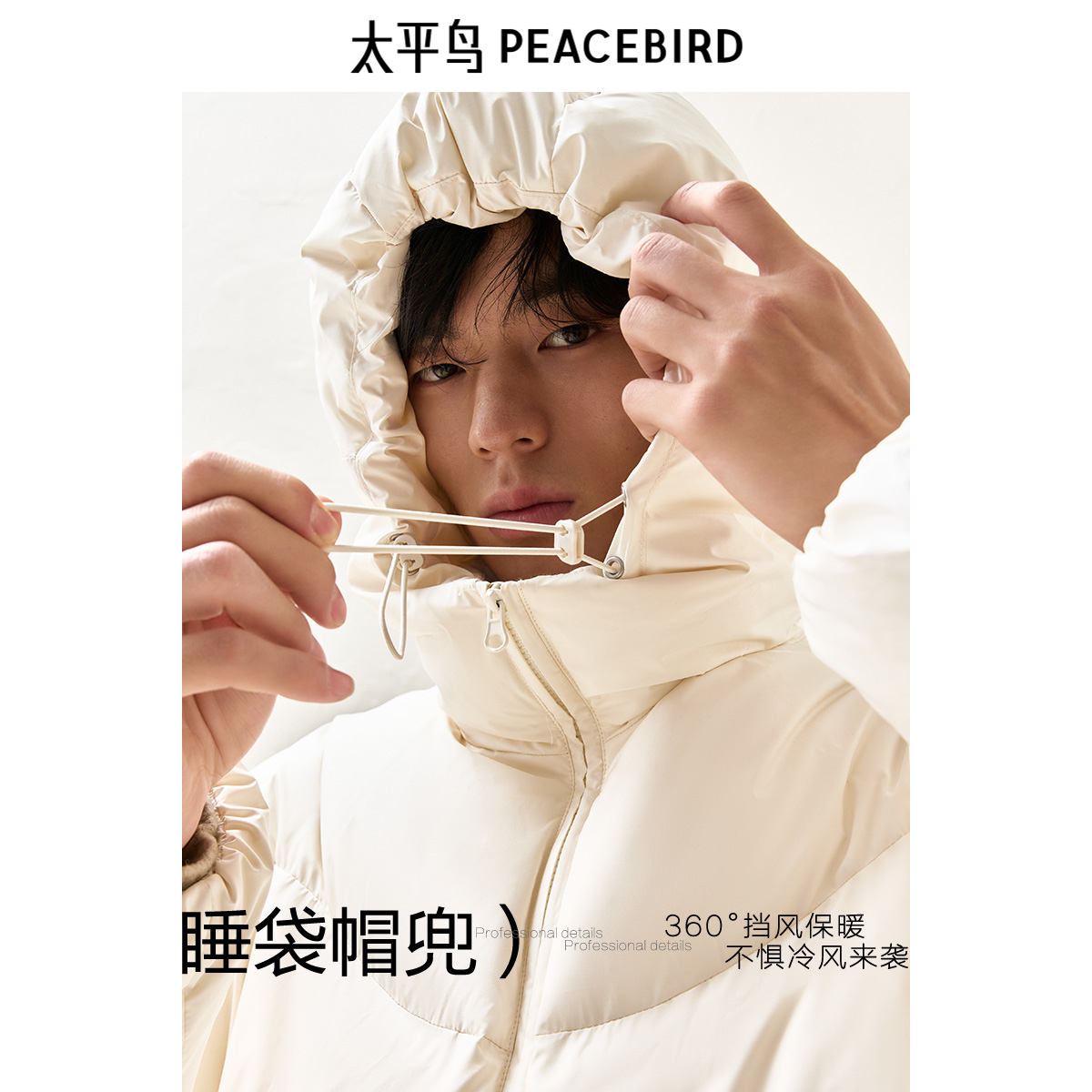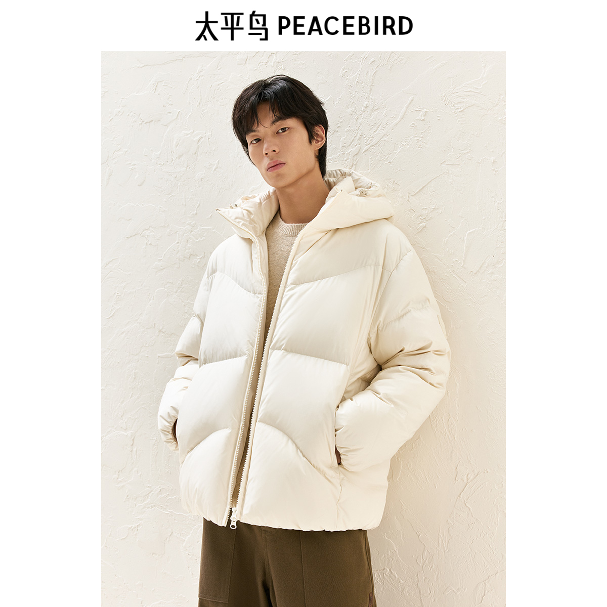 连帽面包服冬季 太平鸟男装 防寒宽松纯色羽绒服Y 95%进口鸭绒