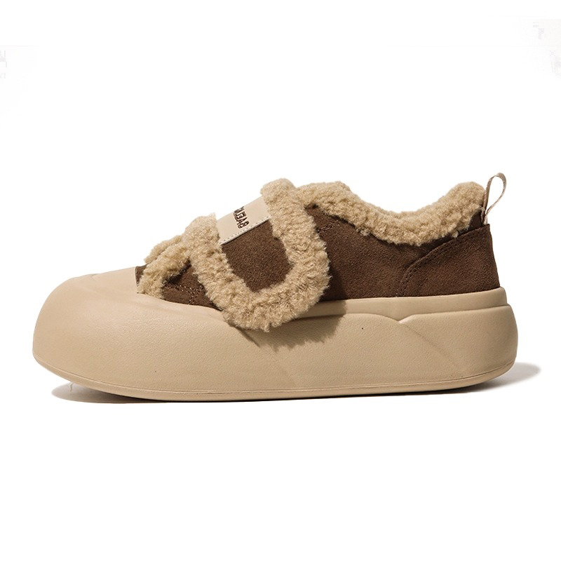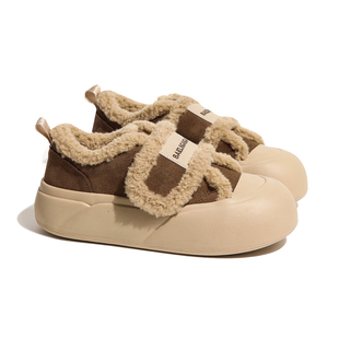 潮 一脚蹬学生保暖面包鞋 女童松糕底魔术贴棉鞋 冬加绒加厚2025新款