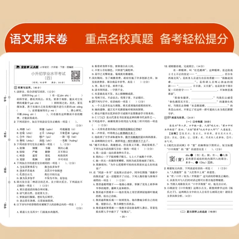 冲刺100分一年级二年级三四五六年级下册试卷测试卷全套人教版 语文数学英语小学生同步练习册卷期末卷一百分真题卷子6年级考试配套