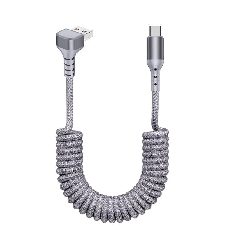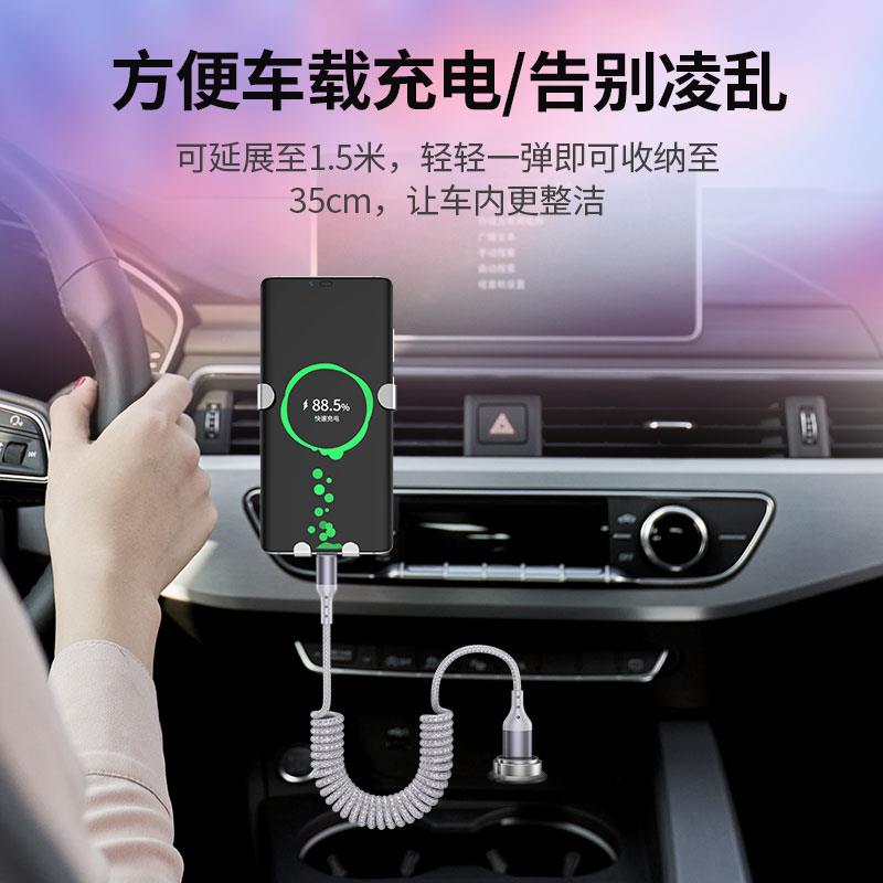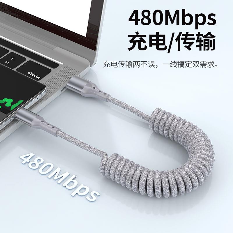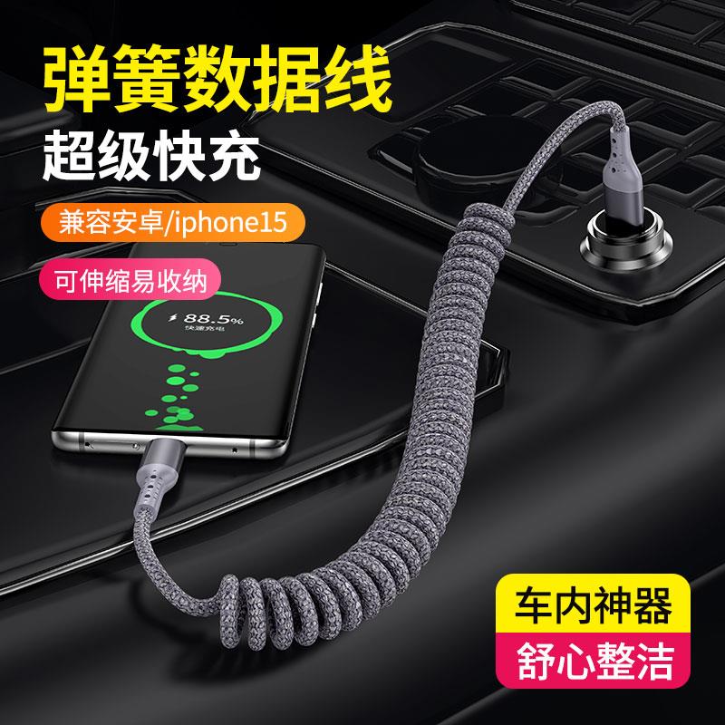 C弹簧数据线PD100W快充适用iPhone14 适用于双头type 15苹果16华为汽车用弯头充电线摩托车弹力 官方正品