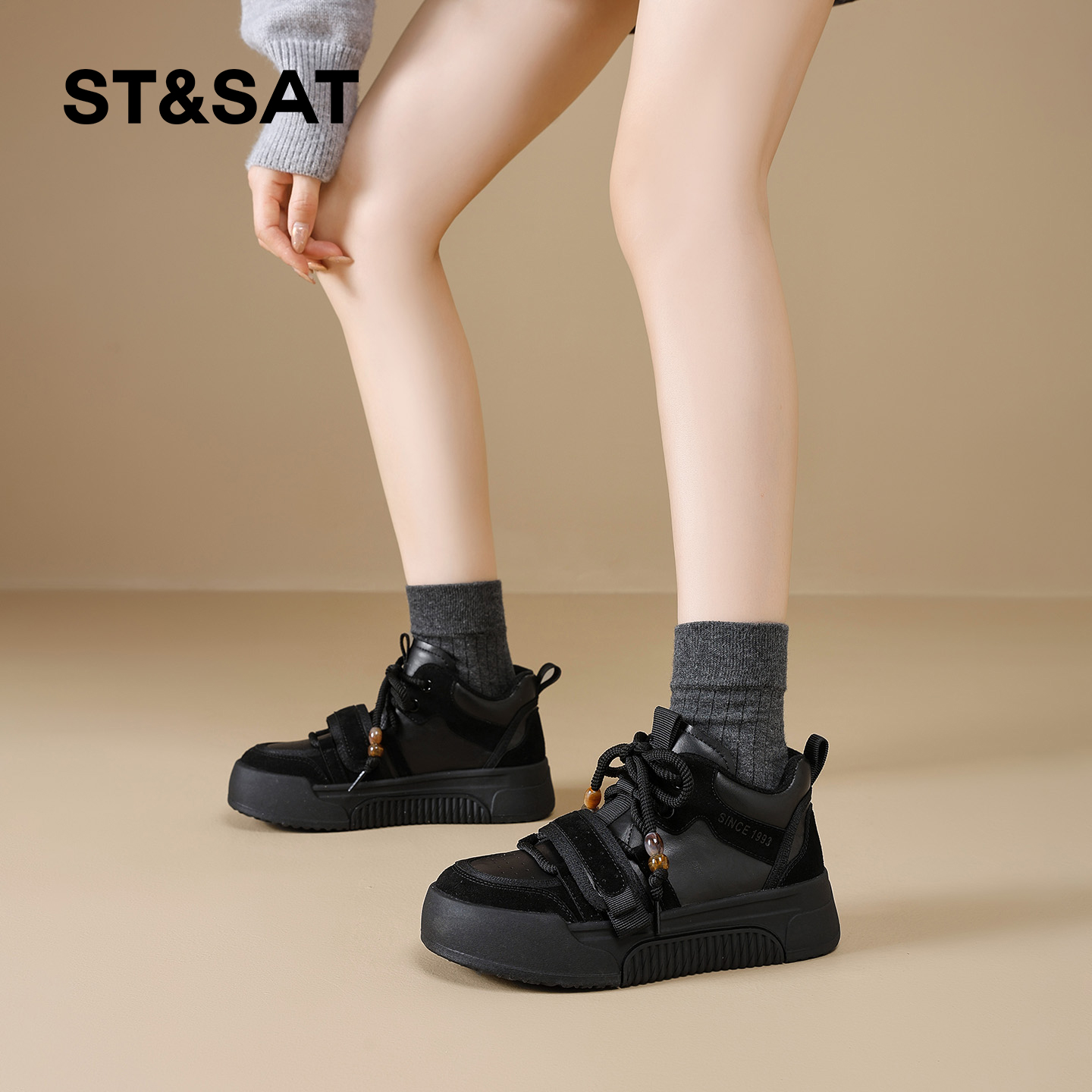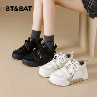 靴子 真皮防水厚底增高工装 森马马丁靴男秋季 高帮百搭休闲白色板鞋