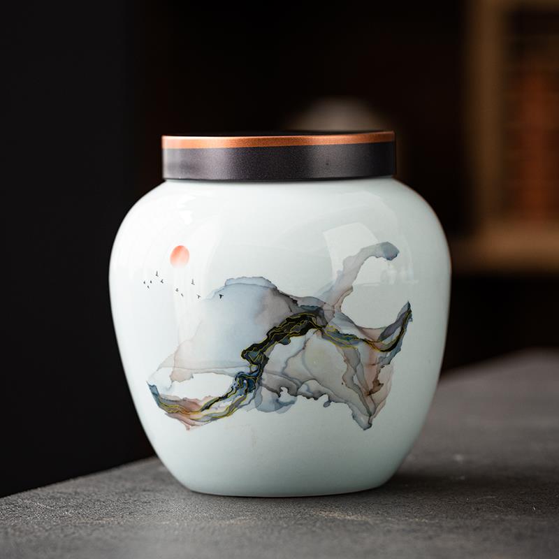 陶迷防潮茶叶罐密封罐复古陶瓷茶具大容量茶仓紫砂便携青瓷储物罐