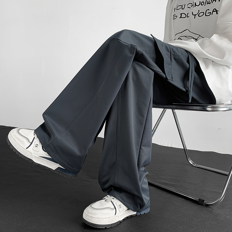 女春秋新款 休闲直筒慵懒松弛感裤 高腰垂感窄版 裤 子 西装 黑色阔腿裤