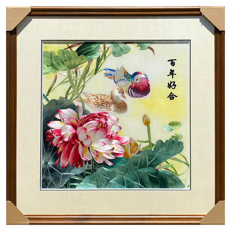 非遗苏绣成品挂画手工刺绣精品百年好合鸳鸯荷花送朋友结婚礼物画