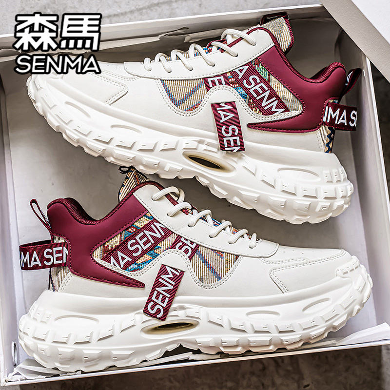 小白老爹潮鞋 高帮运动休闲跑步真皮厚底增高网红爆款 秋季 森马女鞋