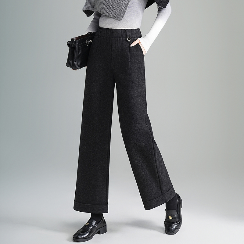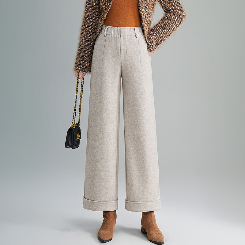 羊毛呢直筒裤 垂感阔腿卷边休闲裤 女秋冬季 高腰显瘦九分裤 新款 时尚