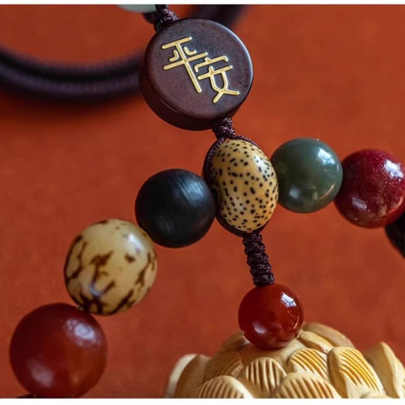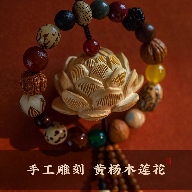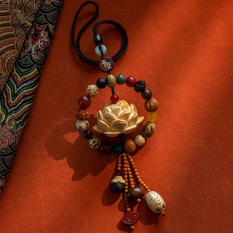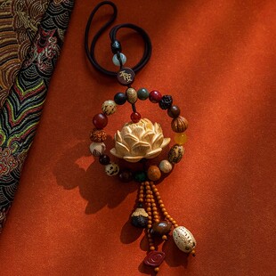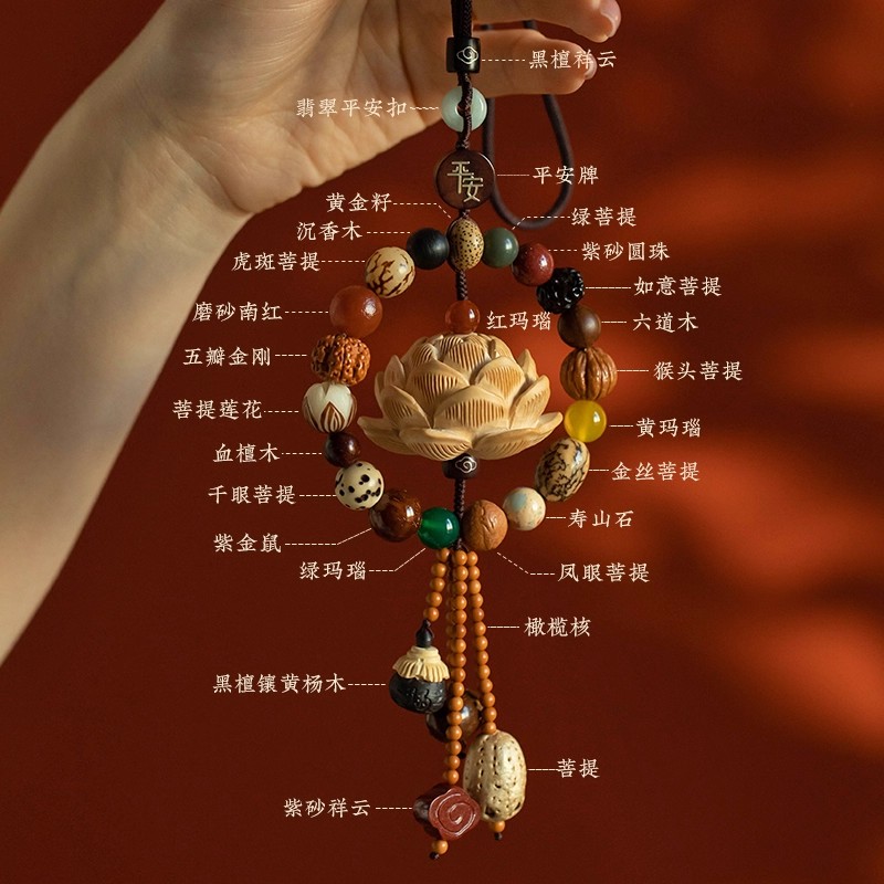 多宝菩提天然黄杨木莲花汽车挂件礼物车载挂饰后视镜吊坠步步生莲