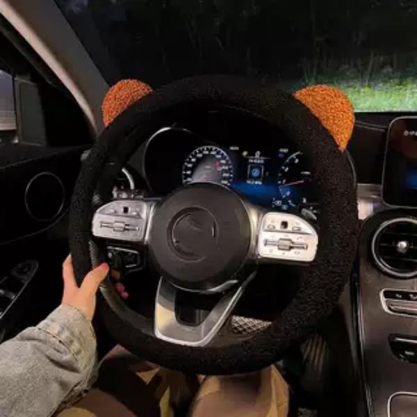 饰冬天保暖加热汽车把套女款 通用装 毛绒网红可爱四季 方向盘套冬季