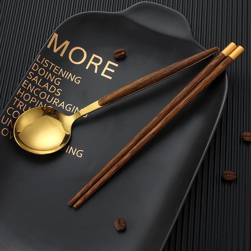 筷子勺子套装 叉子木质便携餐具一人用高颜值不锈钢三件套学生旅行