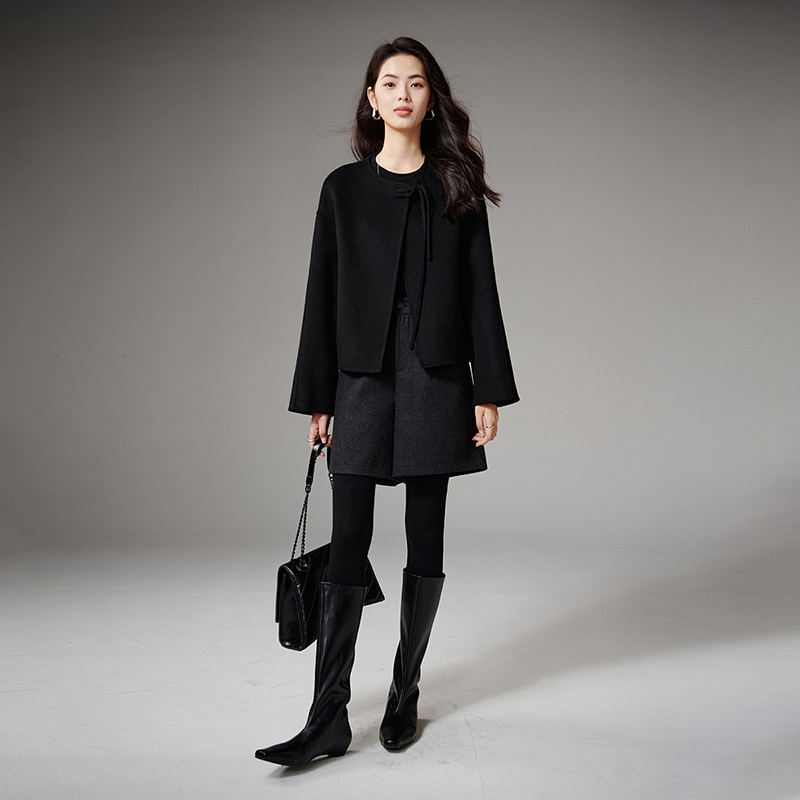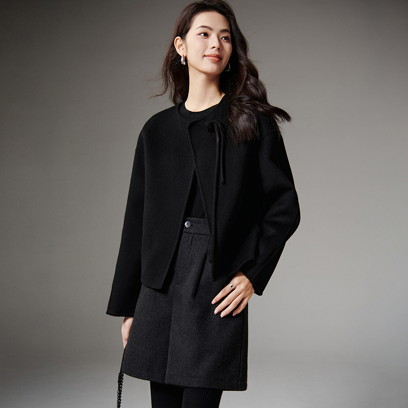 小个子气质大衣 双面羊毛呢外套2025秋冬新款 中老年妈妈秋冬装 短款