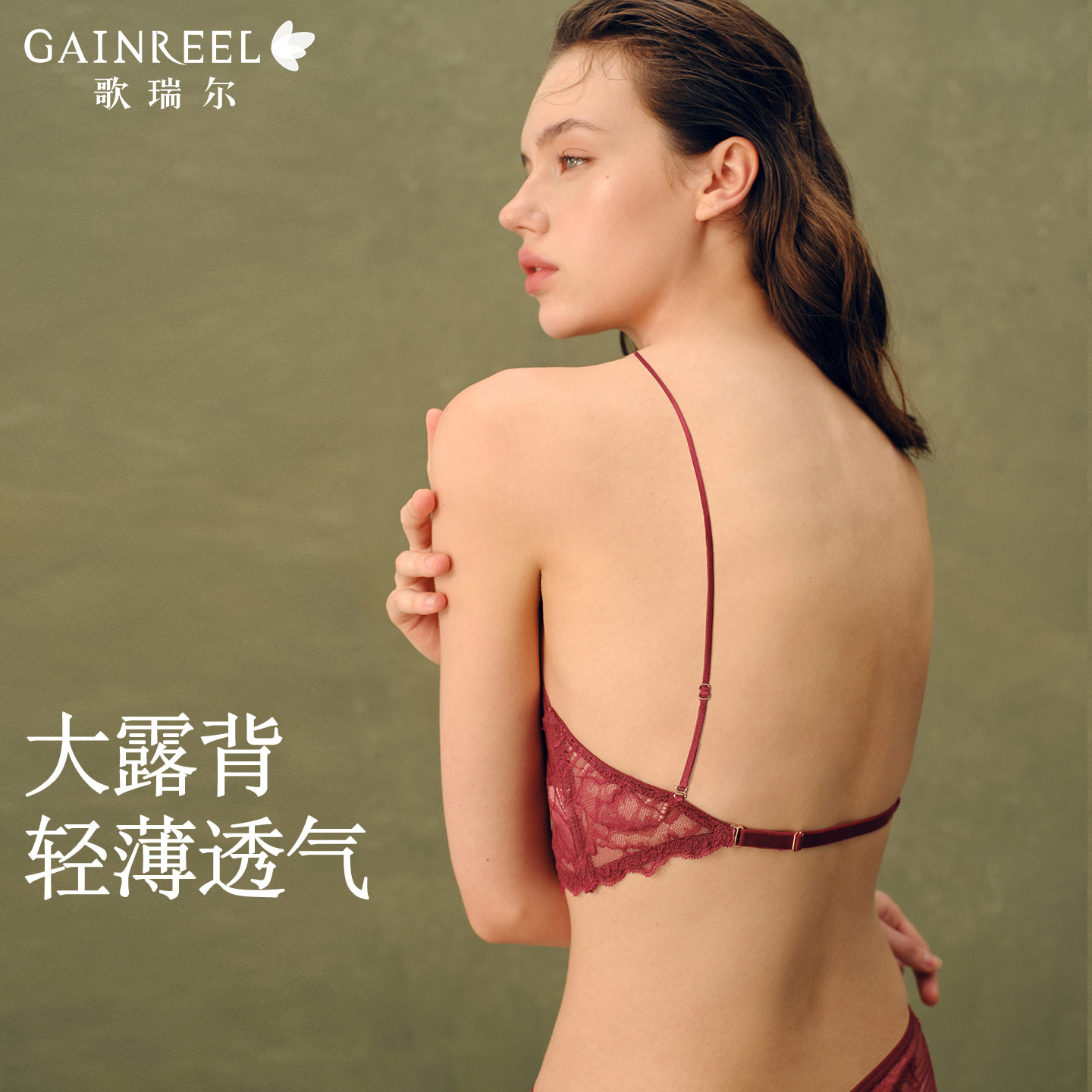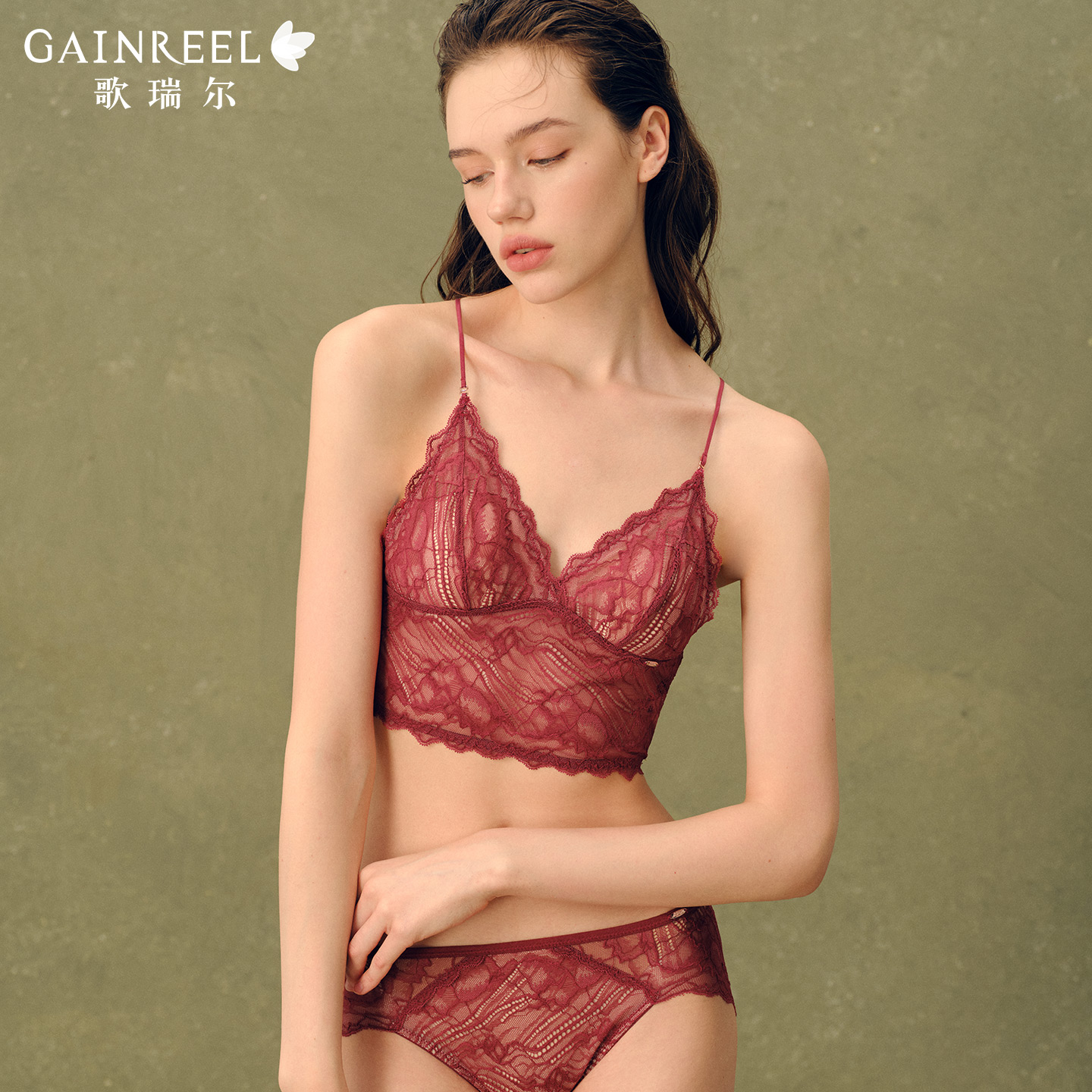 文胸红色结婚 兔耳杯交叉细肩带背心式 歌瑞尔蕾丝美背内衣女款 薄款