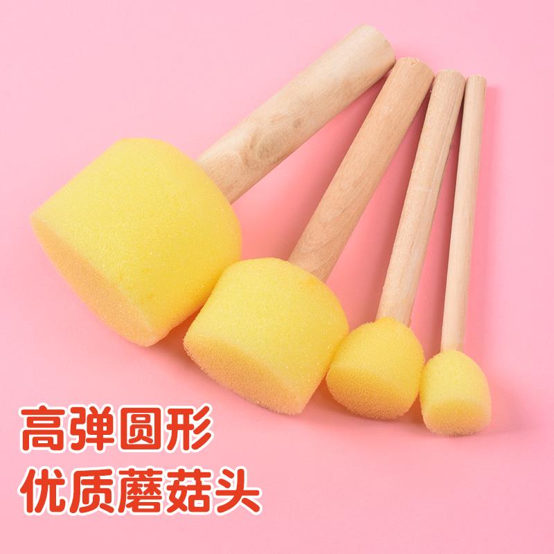 海绵画刷圆形印章幼儿园儿童手工diy拓印海绵棒画画套装 绘画工具
