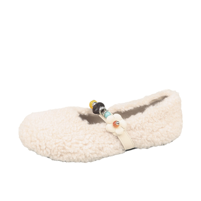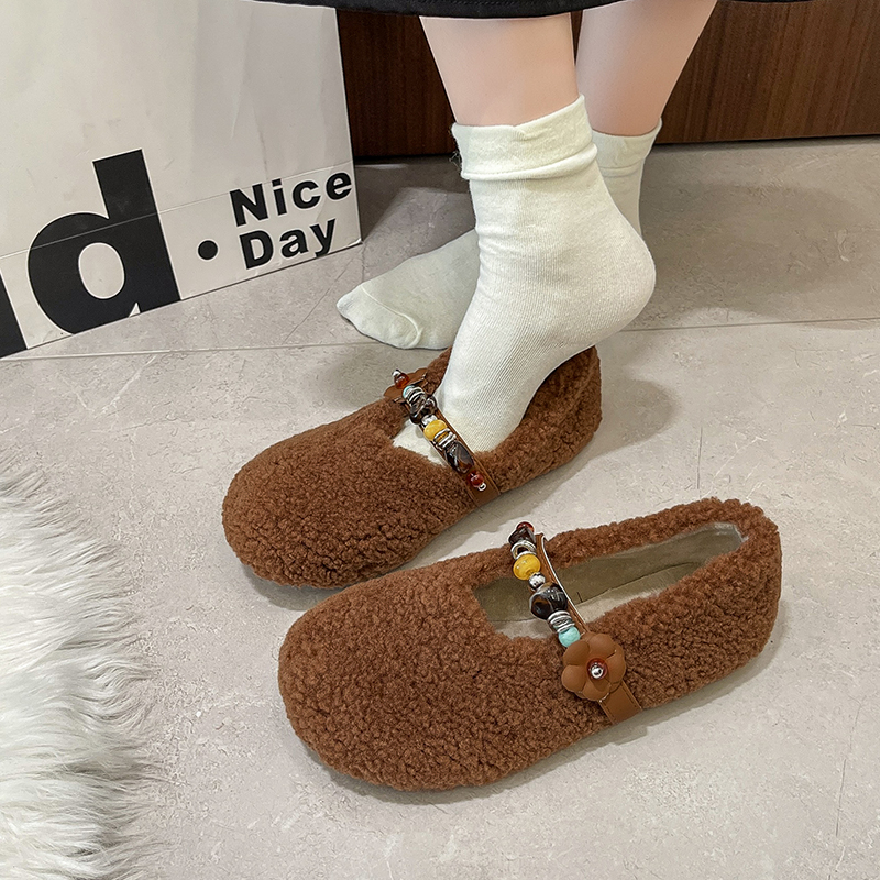 外穿平底复古软底勃肯大头一脚蹬棉鞋 秋冬季 女加绒乐福鞋 豆豆鞋 款