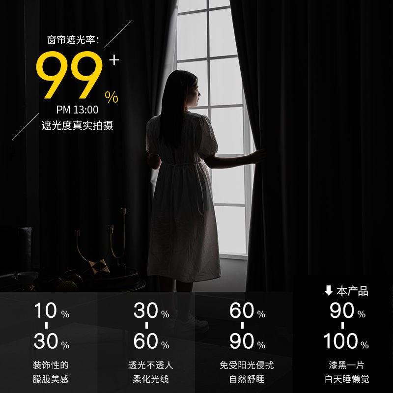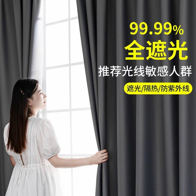 遮光卧室避光窗帘纯色现代简约客厅防晒隔热挂钩式 定制成品遮阳布