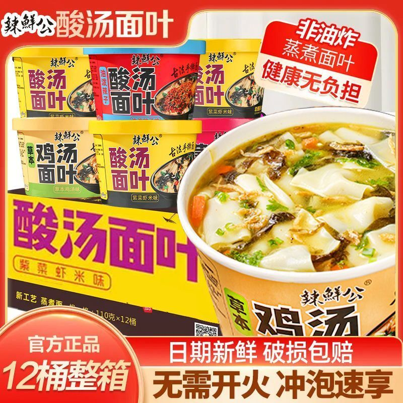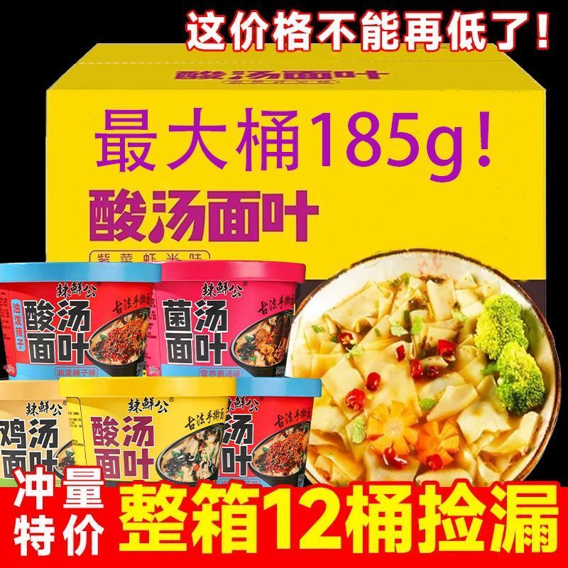 紫菜虾米泡面方便面速食冲泡一整箱夜宵 酸汤面叶桶装 大桶185g
