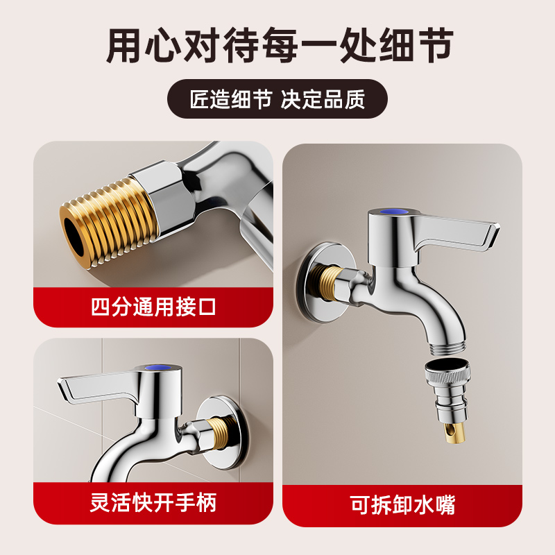 全铜洗衣机水龙头自动止水阀防脱拖把池加长4分专用水嘴接头家用