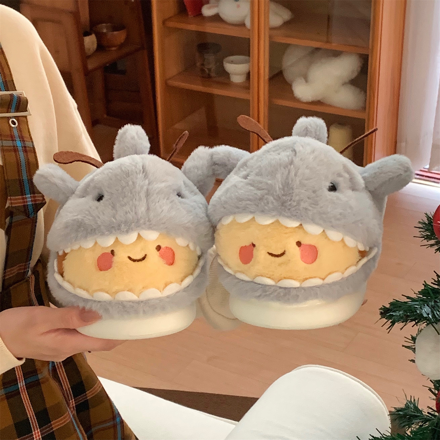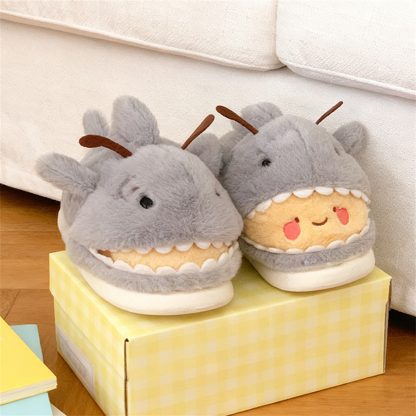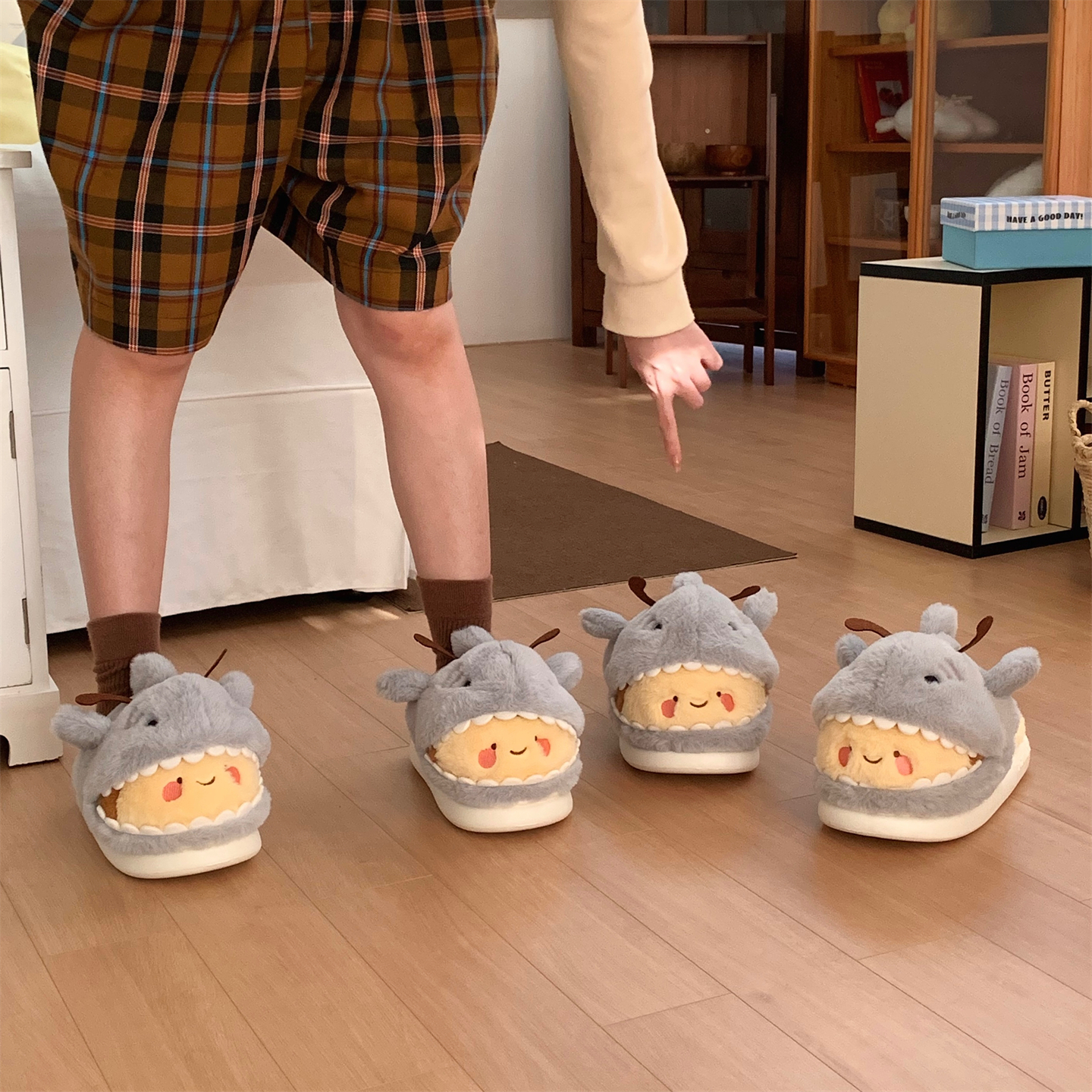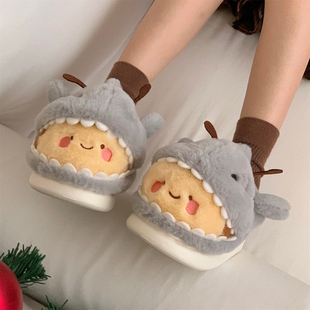 少女心趣味可爱鲨bee棉拖鞋 学生情侣居家防滑冬季 保暖男女毛毛鞋