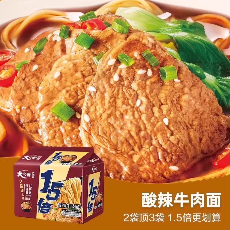 今麦郎大今野1.5倍袋装 混合口味方便面夜宵红烧香辣酸辣牛肉速食