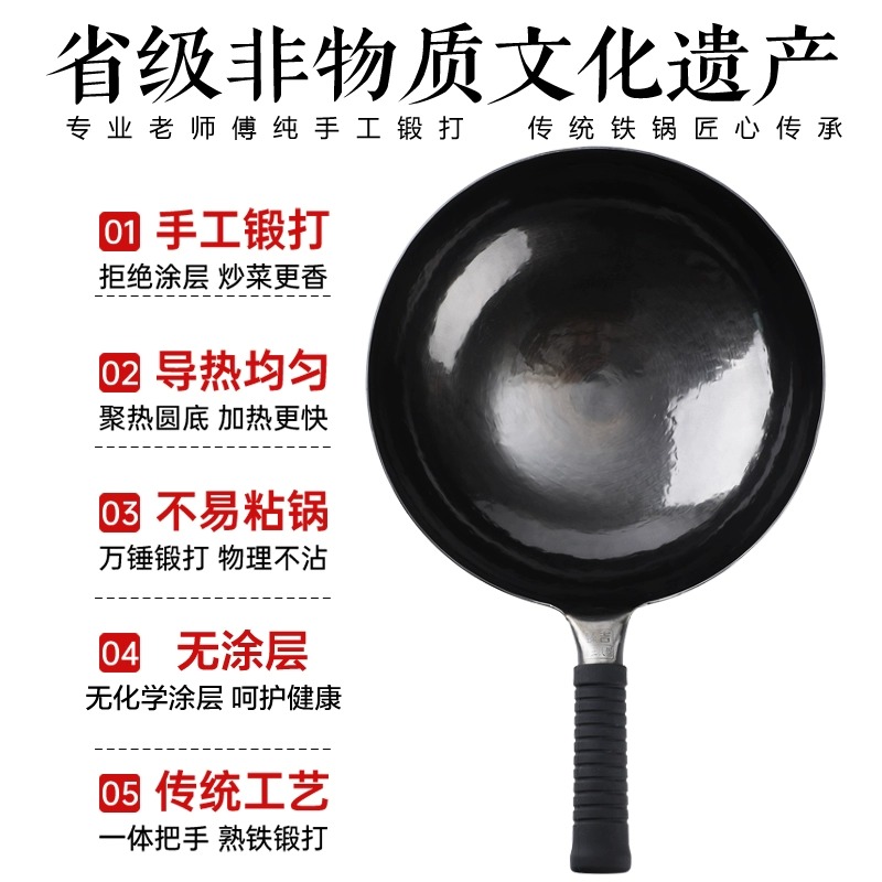 章丘炒菜锅传统铁锅官方旗舰老式 炒锅家用不粘锅无涂层燃气灶适用
