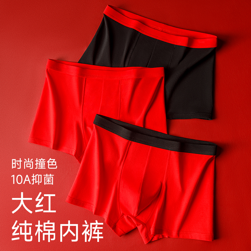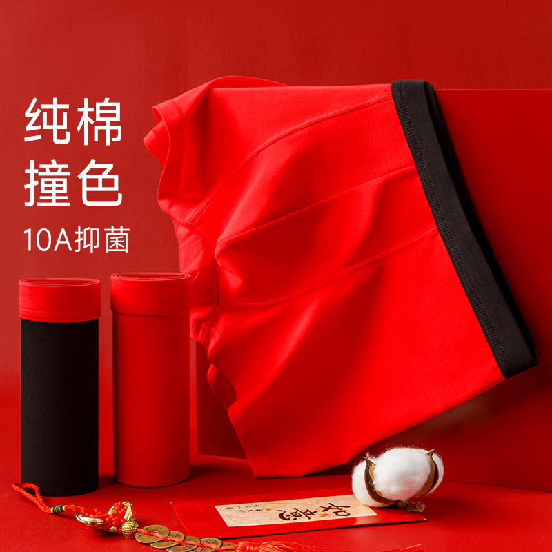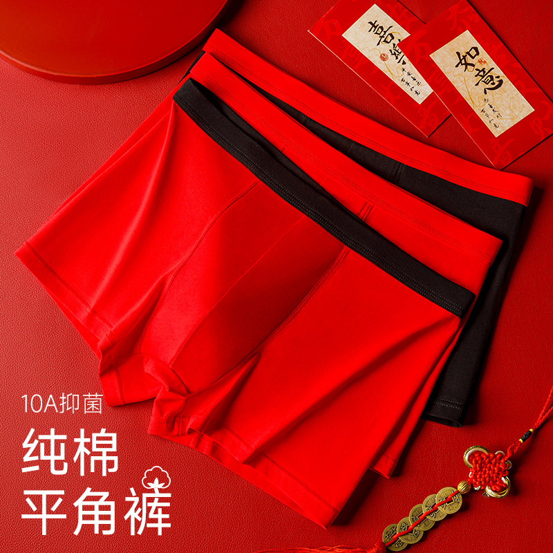 2025蛇马年青少年纯棉平角短裤 本命年结婚四角裤 红色内裤 奥康男士